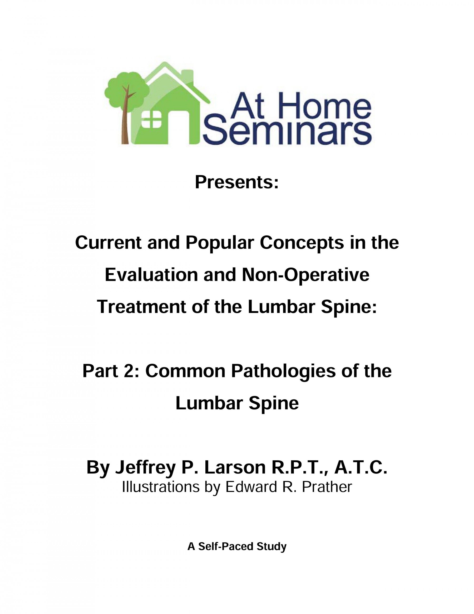 This course is intended to facilitate a review as well as a learning experience for the therapist, athletic trainer, and other related professionals through a self-paced study of the common pathologies of the lumbar spine.